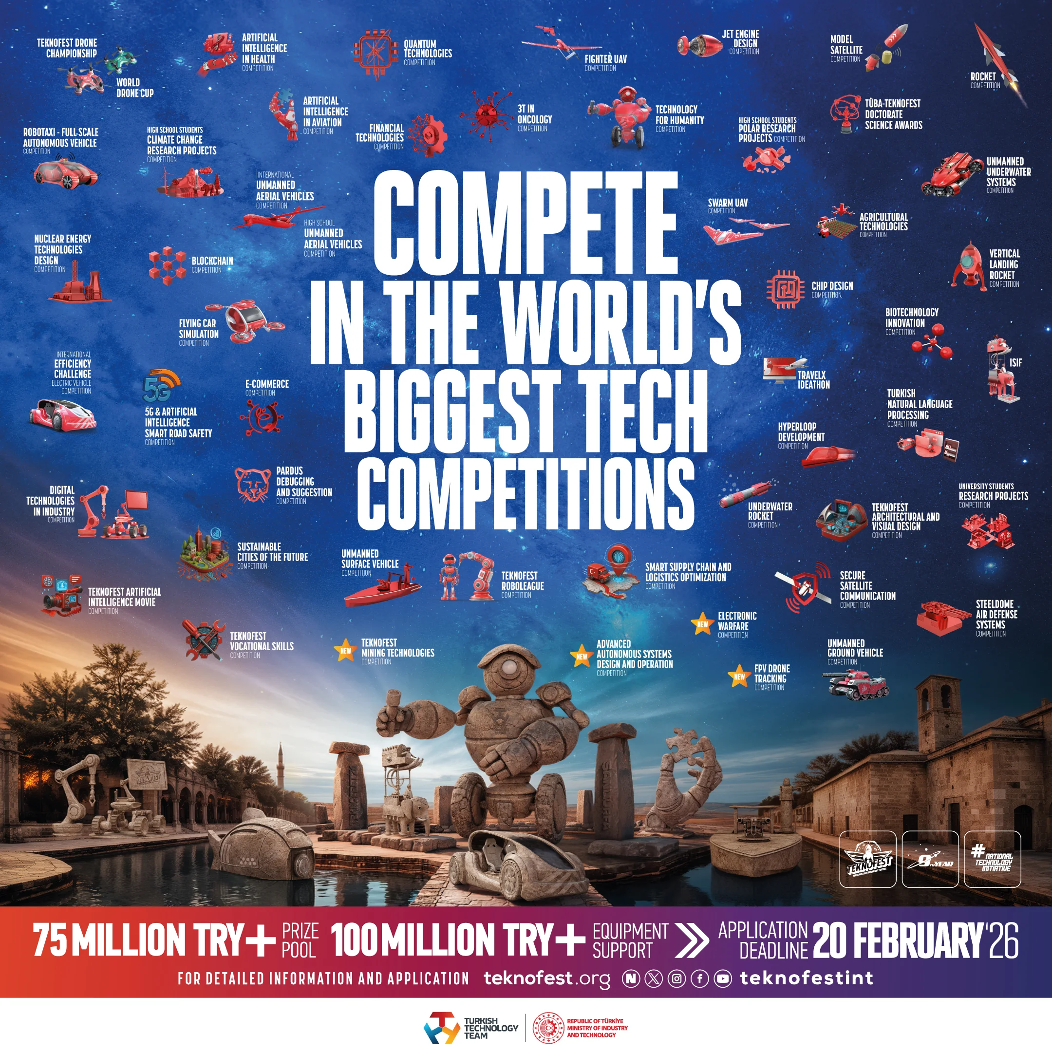 Aplikimet janë tashmë të hapura për Garat e Teknologjisë TEKNOFEST 2026, që përfshijnë 52 kategori kryesore dhe 127 nënkategori! ⚙️🧑💻🏎