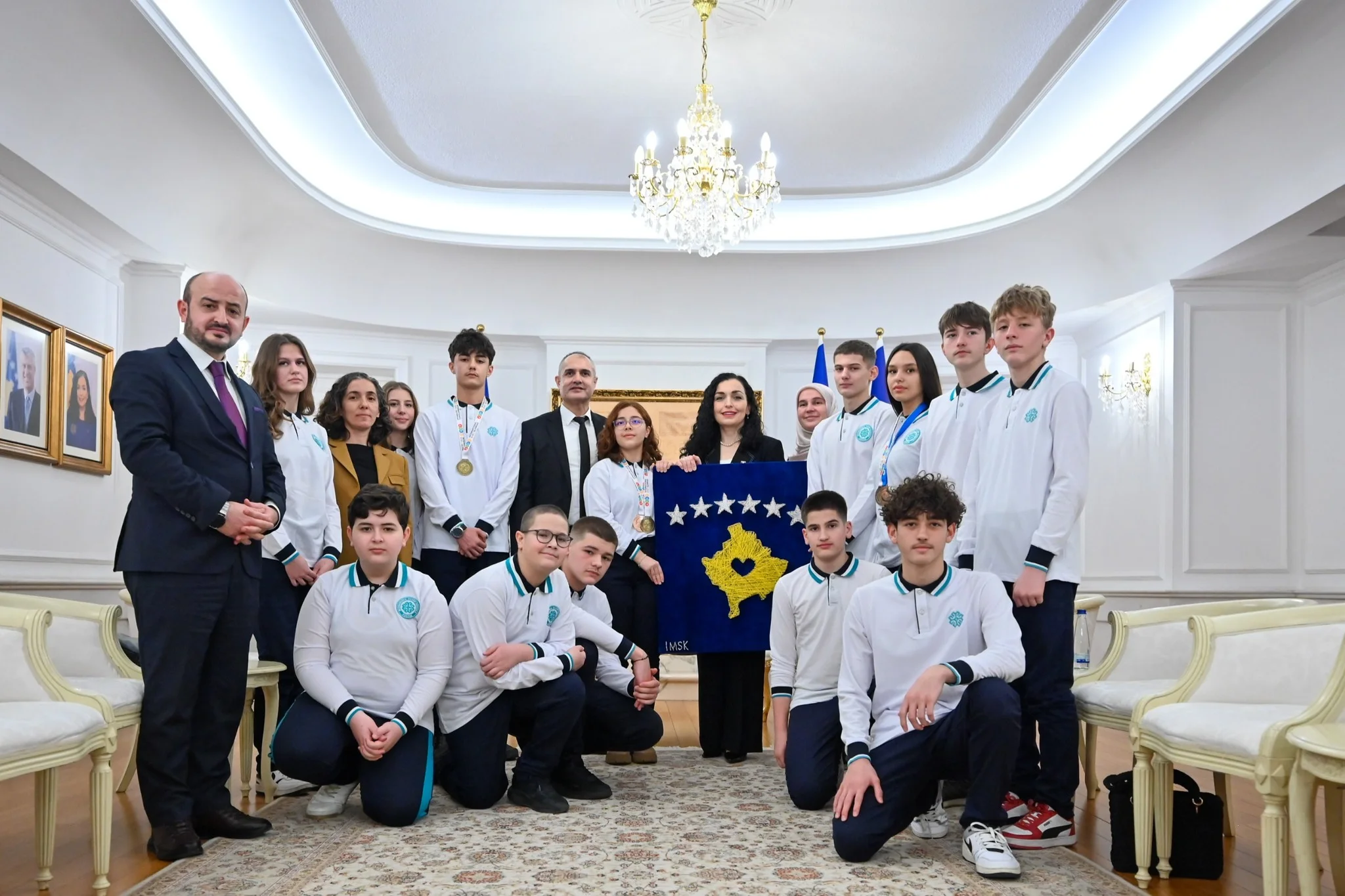 Presidentja e Republikës së Kosovës, znj. Vjosa Osmani, mirëpriti nxënësit tanë nga International Maarif Schools Of Kosova, të cilët shkëlqyen në Olimpiadën Ndërkombëtare Ndërkombëtare STEM 2024, duke i sjellë Kosovës 19 medalje, duke përfshirë vendin e parë në botë në kategorinë Shkencë.